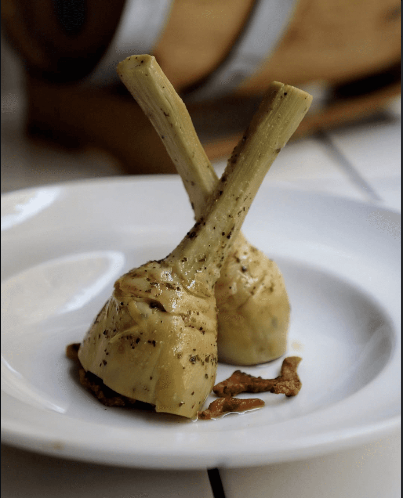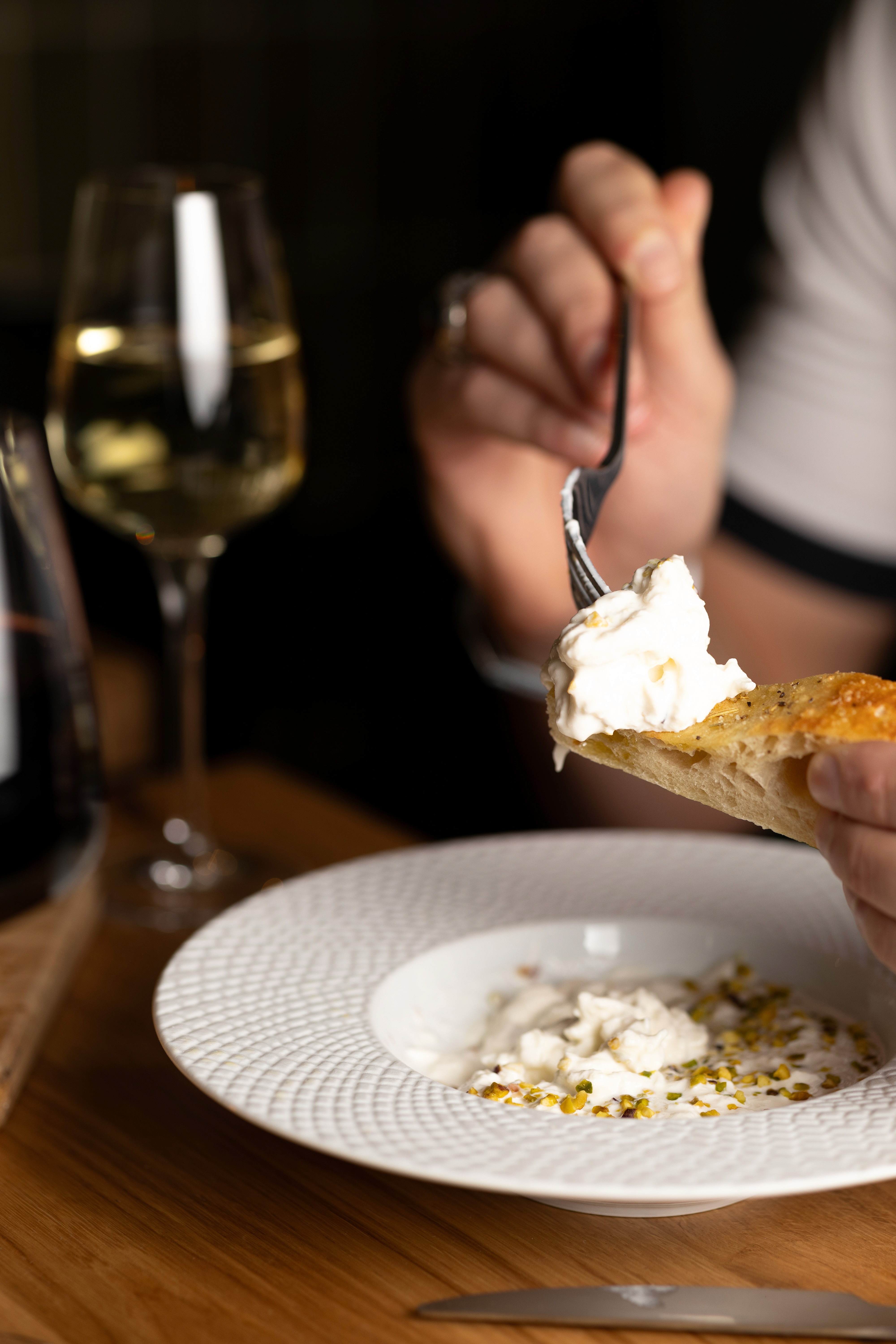 Assiettes à partager, convivialité à l’italienne et carte généreuse : burrata fumée et légumes rôtis, artichauts à la Romana, stracciatella pistache, vitello tonnato…